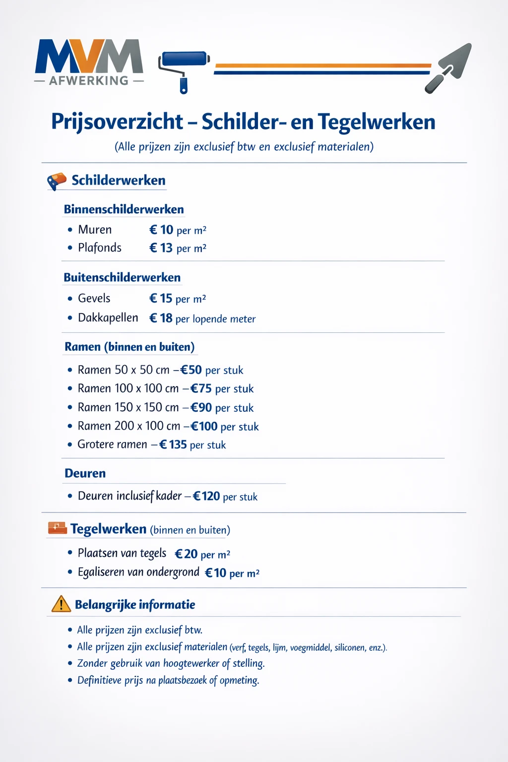 Hoewel de kosten voor een vloerder doorgaans per uur of m2 worden aangegeven, ontvangt u meestal een offerte voor de totaalopdracht. Wilt u een laminaatvloer laten leggen bijvoorbeeld, dan betaalt u hiervoor een totaalbedrag dat gemiddeld tussen de € 200,- en € 800,- ligt. Voor een plavuizen- of natuursteenvloer moet u rekening houden met een bedrag dat tussen de € 800,- en € 1800,- ligt. Andere mogelijkheden zijn onder andere het laten storten van een betonvloer, het laten leggen van vloerbedekking maar ook het egaliseren van uw vloer.